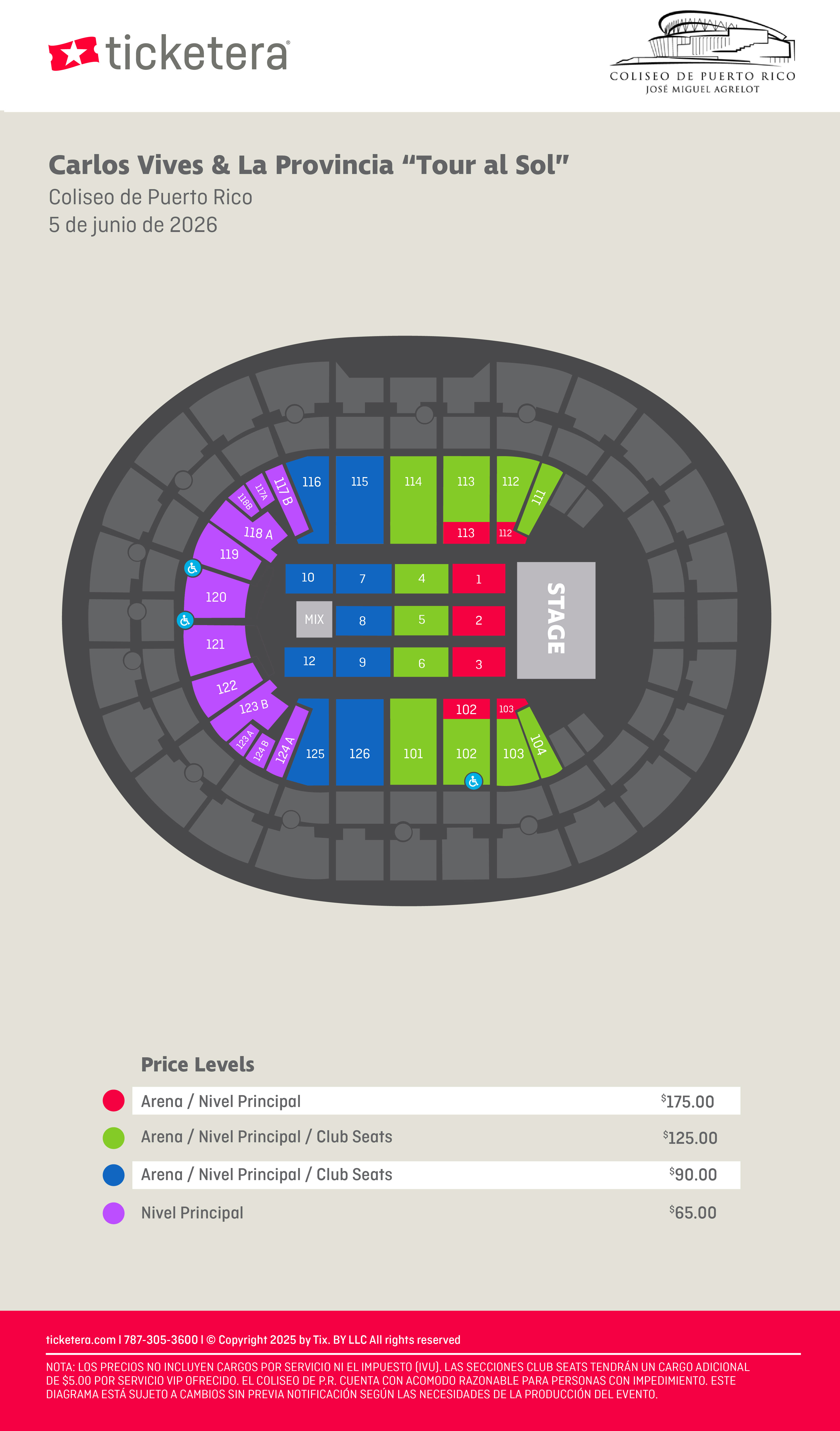 Al adquirir boletos en una sección ADA (WH), el comprador acepta presentar una tarjeta de impedido o carné válido el día del evento como requisito de entrada.