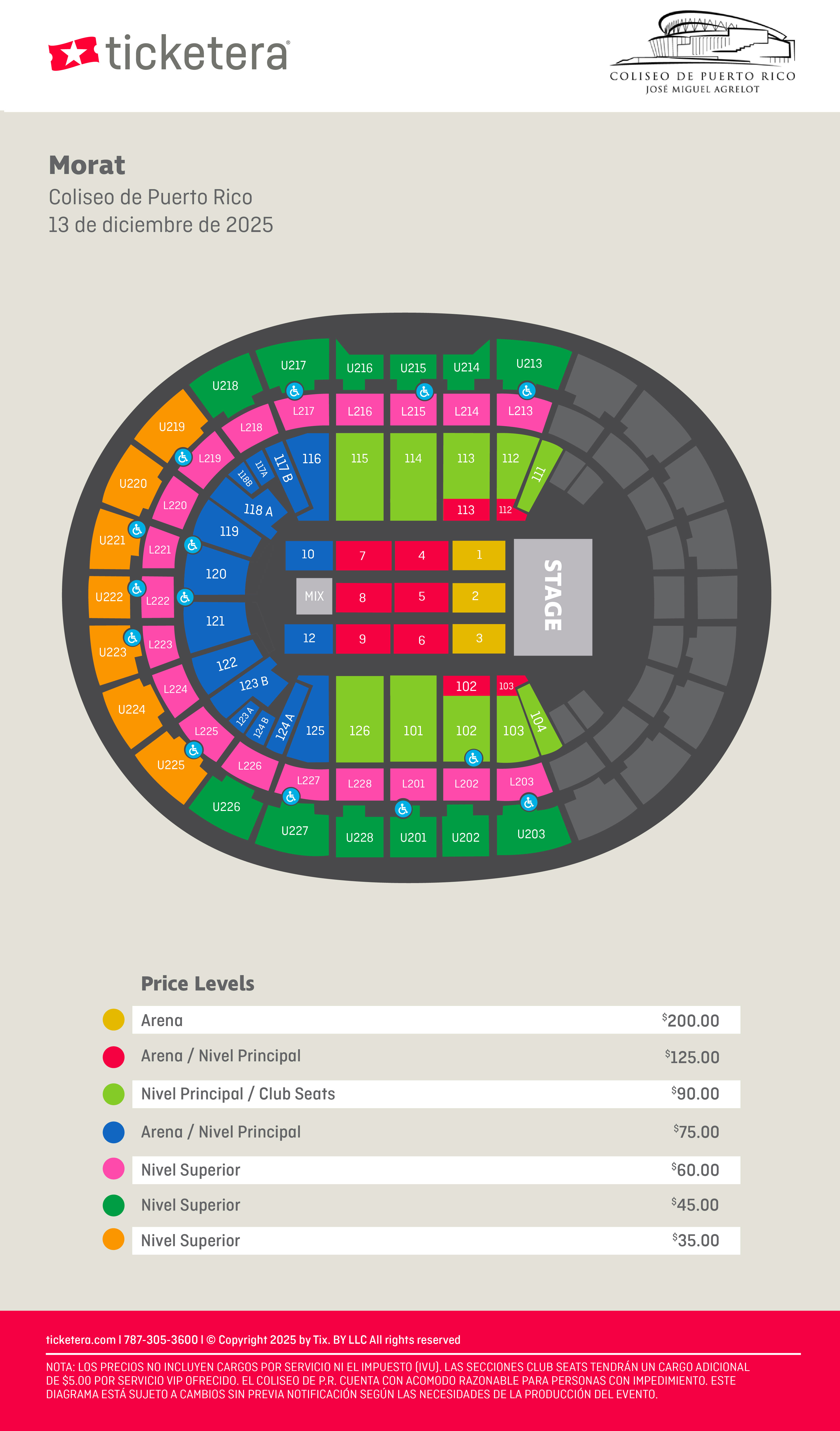 Por política del Coliseo y por su seguridad, se requiere que todo menor de 15 años o menos deben estar acompañados por un adulto mayor de 21 años en todo momento. Esta regla aplica para todos los eventos que se llevan a cabo en el Coliseo de Puerto Rico.