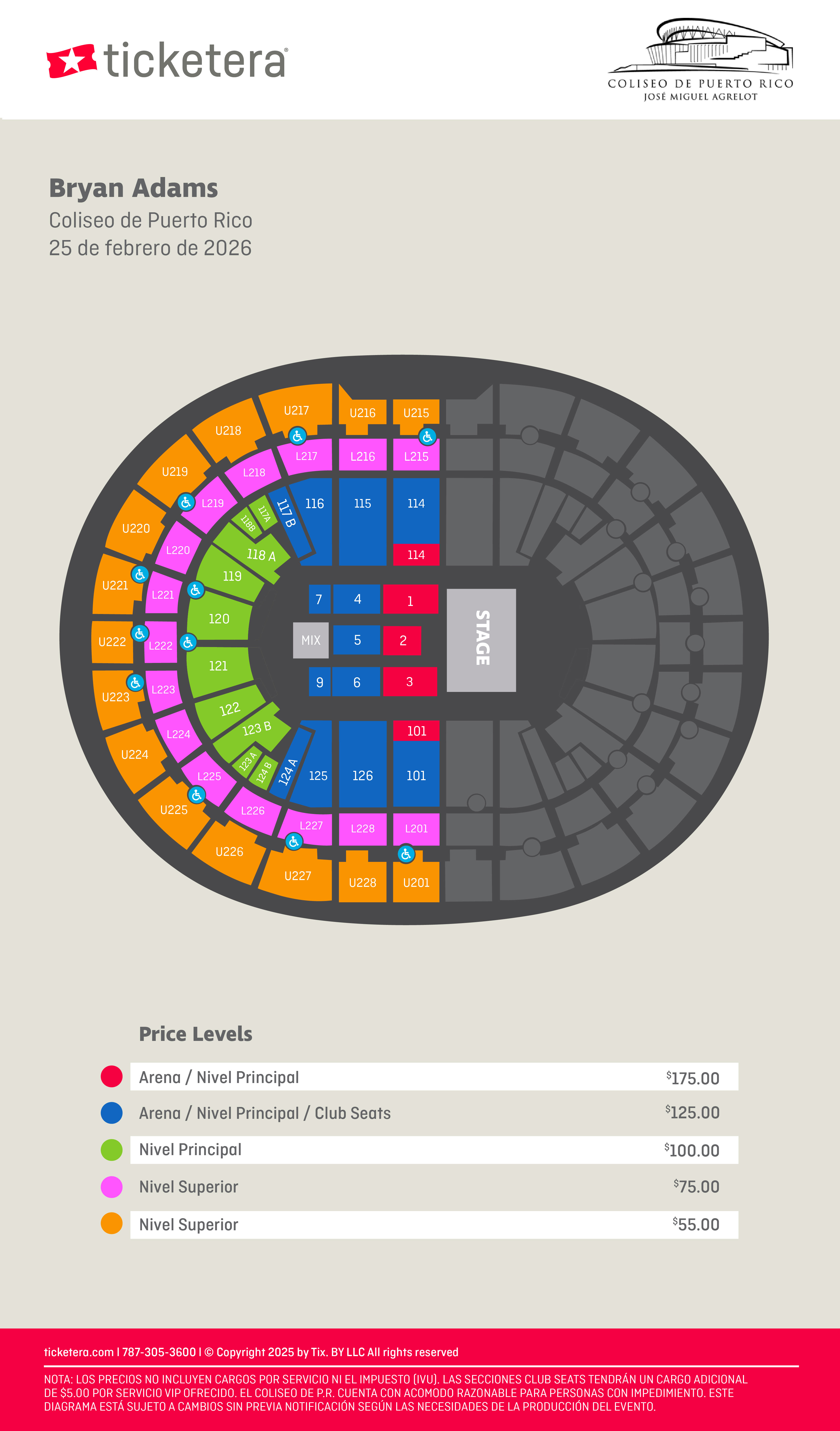 Por política del Coliseo y por su seguridad, se requiere que todo menor de 15 años o menos deben estar acompañados por un adulto mayor de 21 años en todo momento. Esta regla aplica para todos los eventos que se llevan a cabo en el Coliseo de Puerto Rico.