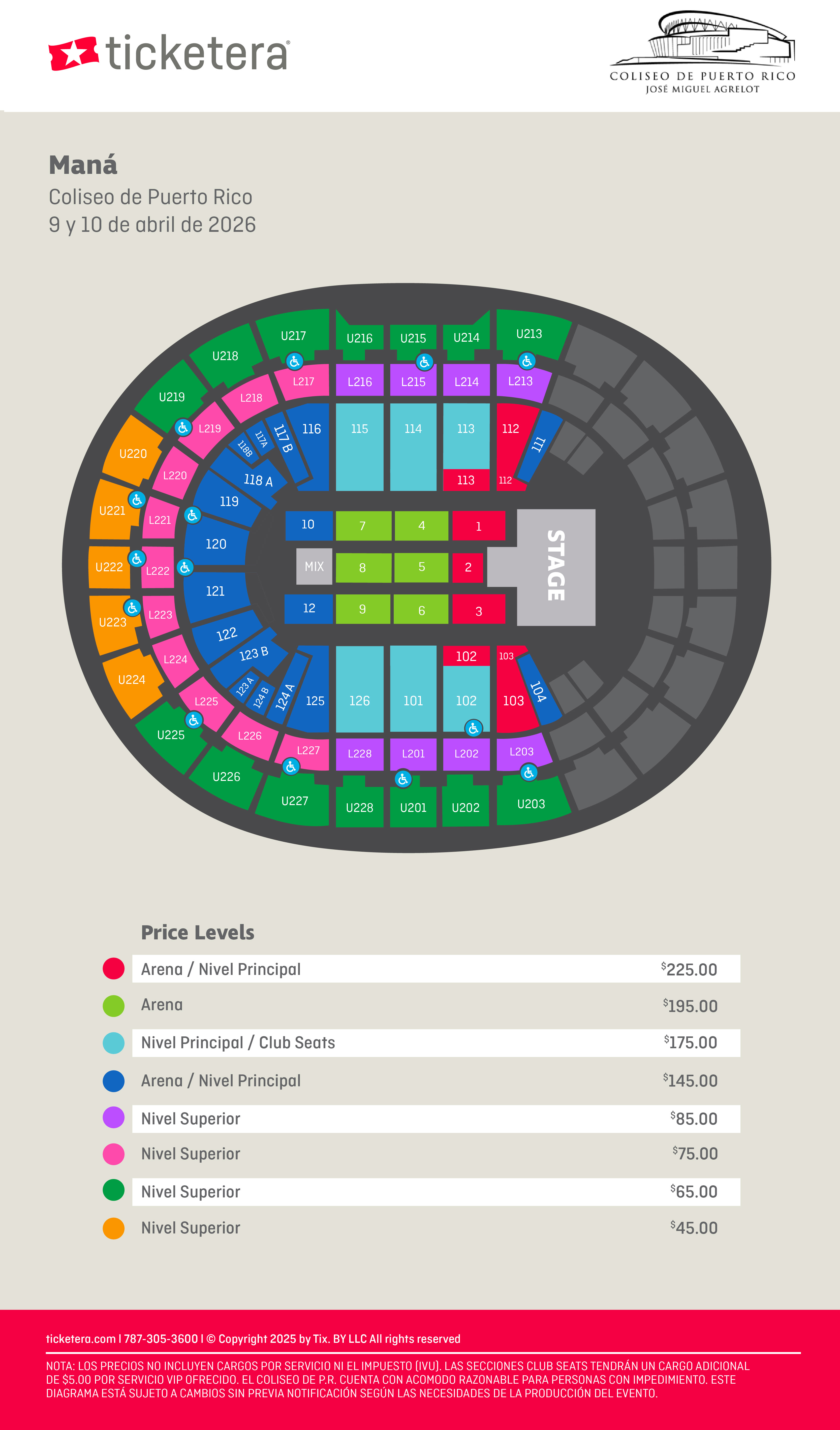 Al adquirir boletos en una sección ADA (WH), el comprador acepta presentar una tarjeta de impedido o carné válido el día del evento como requisito de entrada.