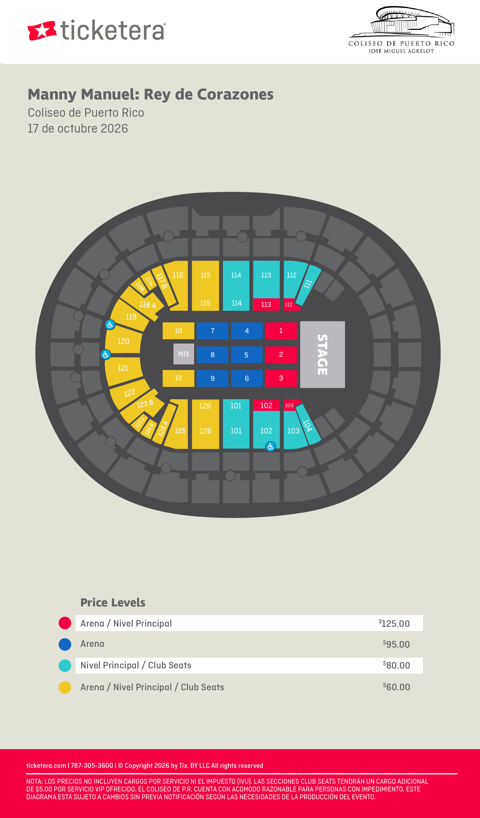 Al adquirir boletos en una sección ADA (WH), el comprador acepta presentar una tarjeta de impedido o carné válido el día del evento como requisito de entrada.