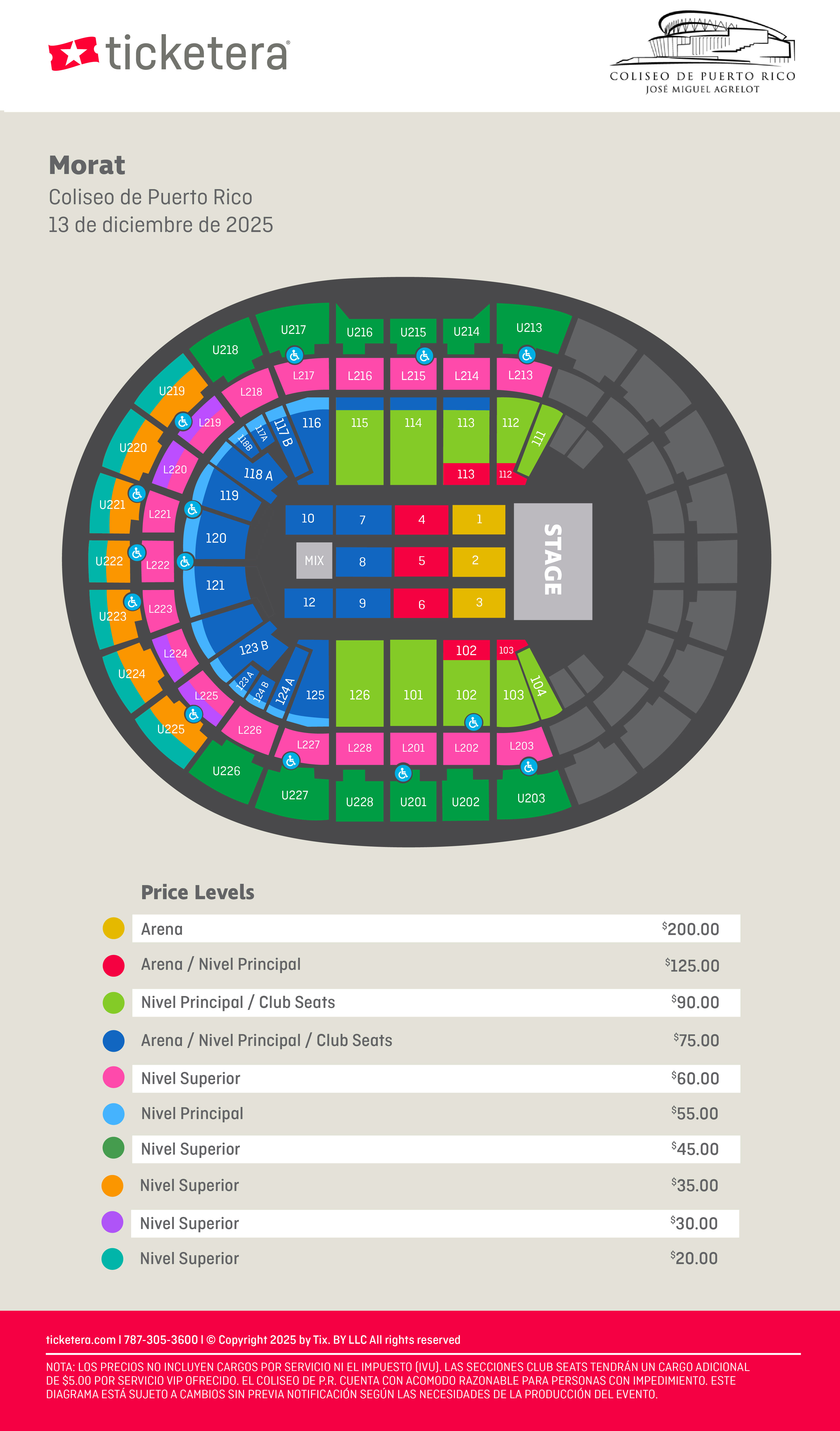 Por política del Coliseo y por su seguridad, se requiere que todo menor de 15 años o menos deben estar acompañados por un adulto mayor de 21 años en todo momento. Esta regla aplica para todos los eventos que se llevan a cabo en el Coliseo de Puerto Rico.