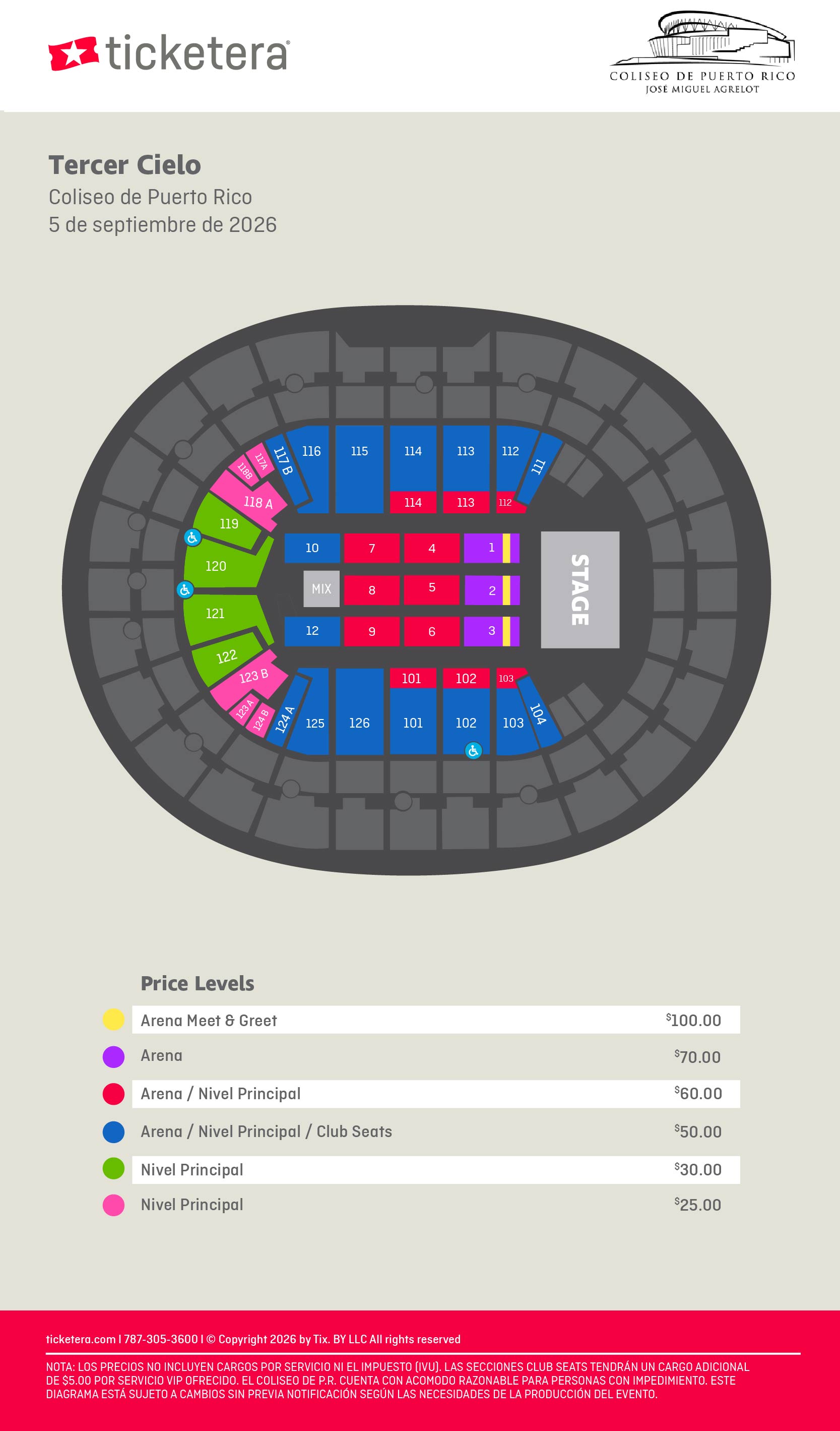 Al adquirir boletos en una sección ADA (WH), el comprador acepta presentar una tarjeta de impedido o carné válido el día del evento como requisito de entrada.