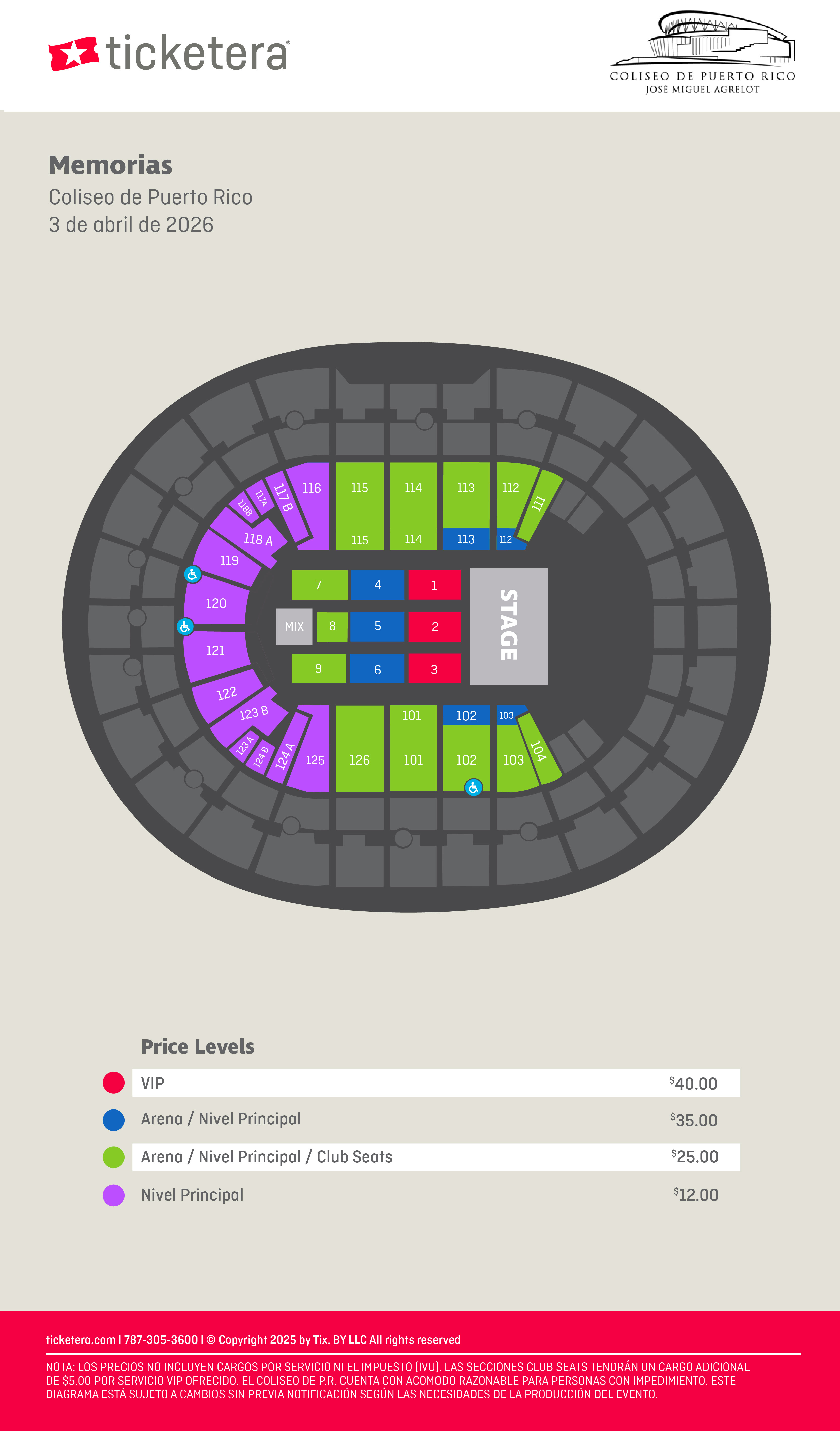 Al adquirir boletos en una sección ADA (WH), el comprador acepta presentar una tarjeta de impedido o carné válido el día del evento como requisito de entrada.