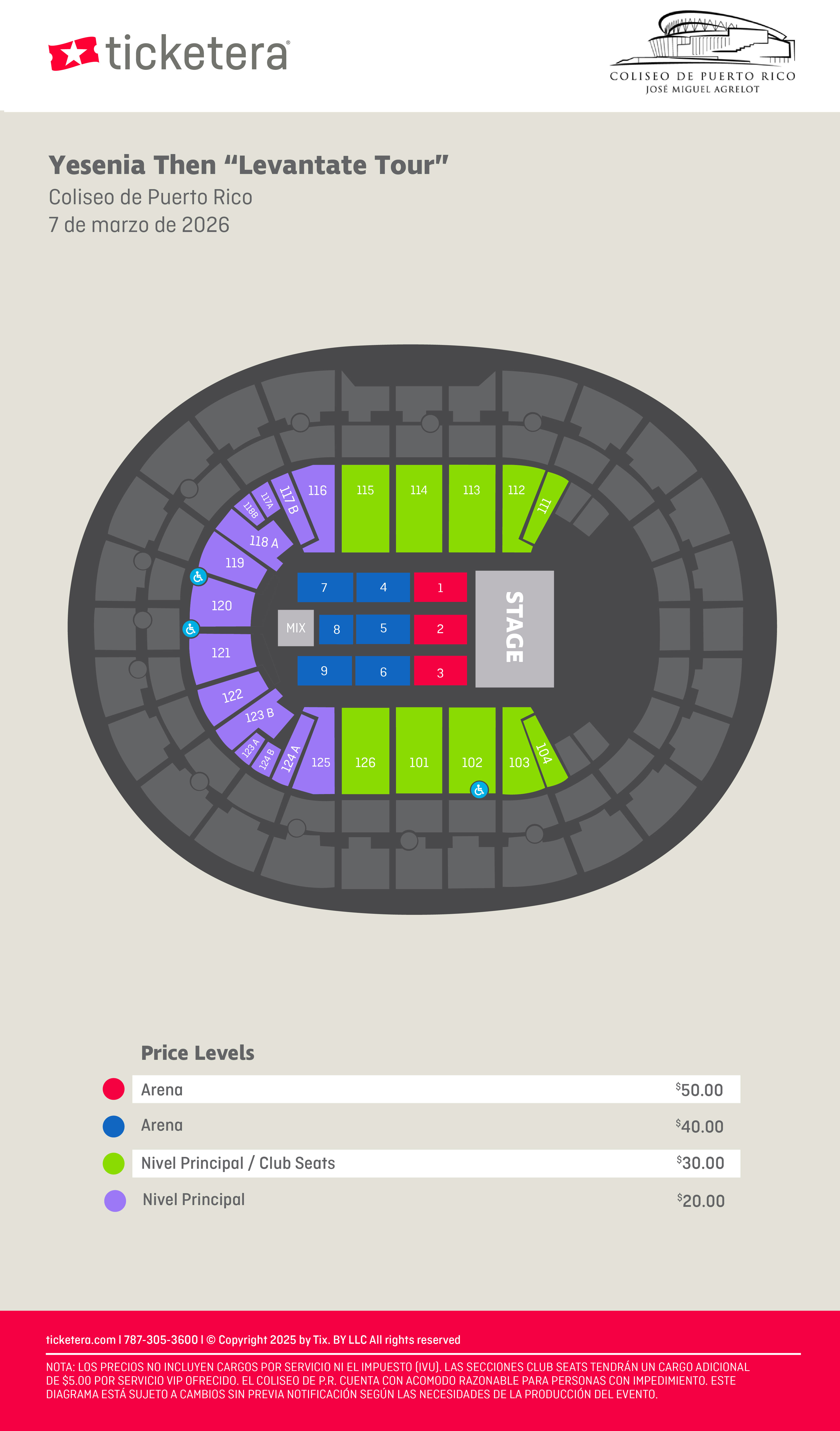 Al adquirir boletos en una sección ADA (WH), el comprador acepta presentar una tarjeta de impedido o carné válido el día del evento como requisito de entrada.