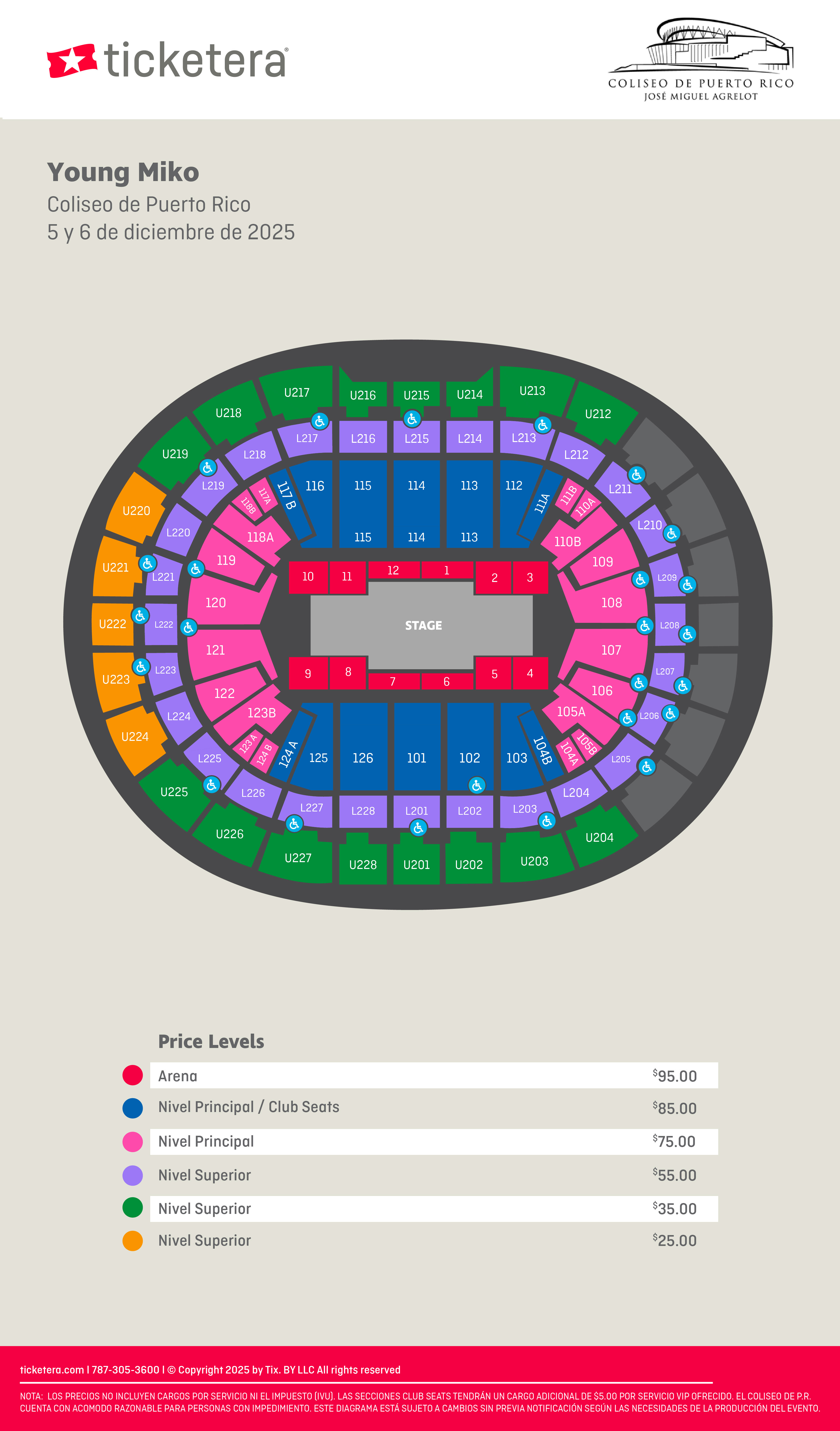 Al adquirir boletos en una sección ADA (WH), el comprador acepta presentar una tarjeta de impedido o carné válido el día del evento como requisito de entrada.